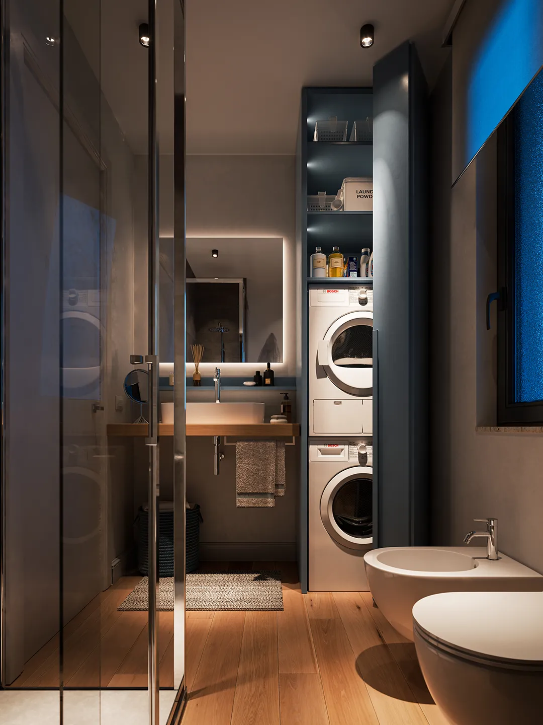 La stessa combinazione di funzionalità ed eleganza si ritrova anche nella sala da bagno: concepita come uno spazio personale e accogliente, è un luogo privato in cui rigenerarsi e dove concedersi momenti di relax in un ambiente armonioso e distensivo.